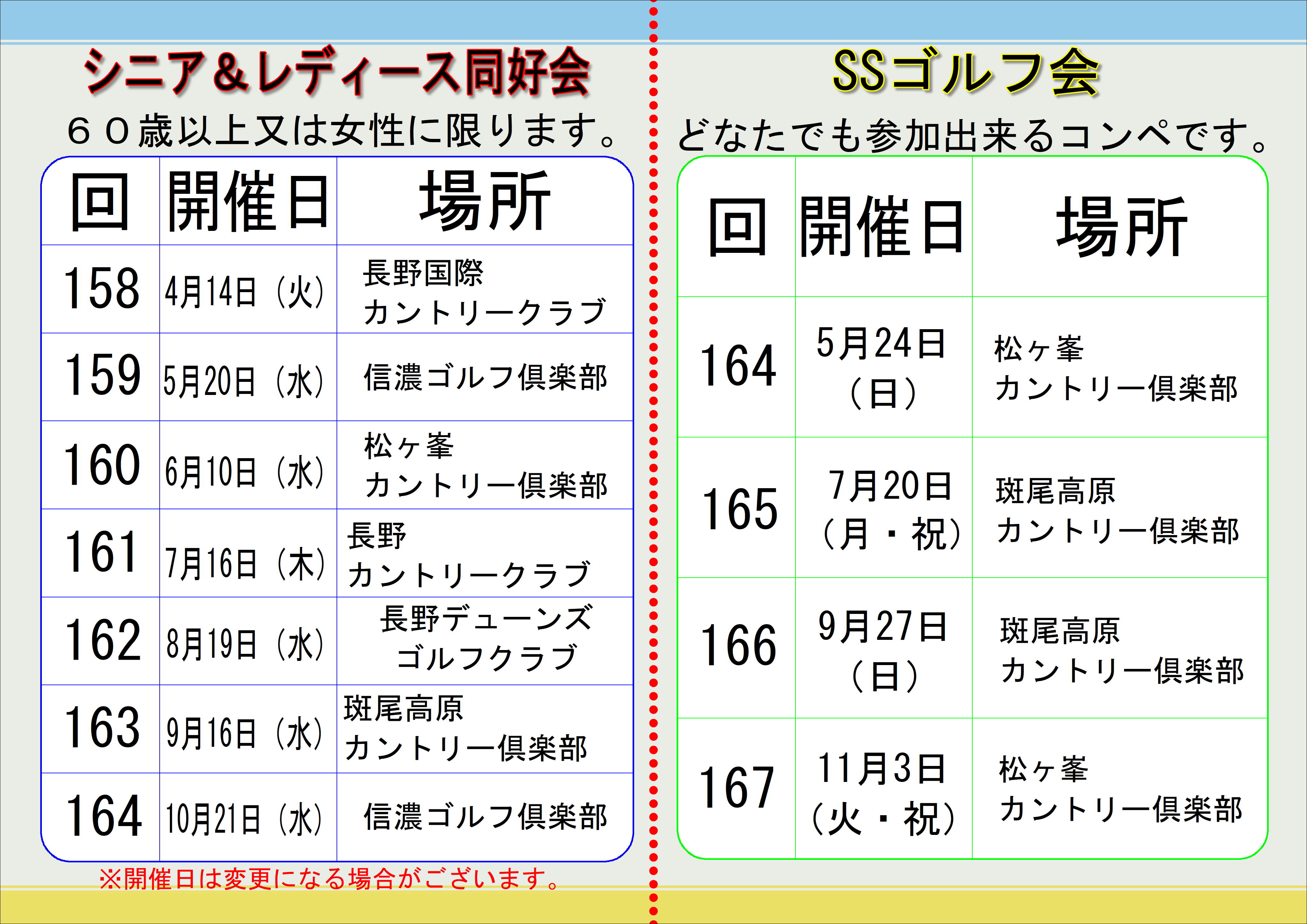 コンペ日程表 -2026年- ⛳