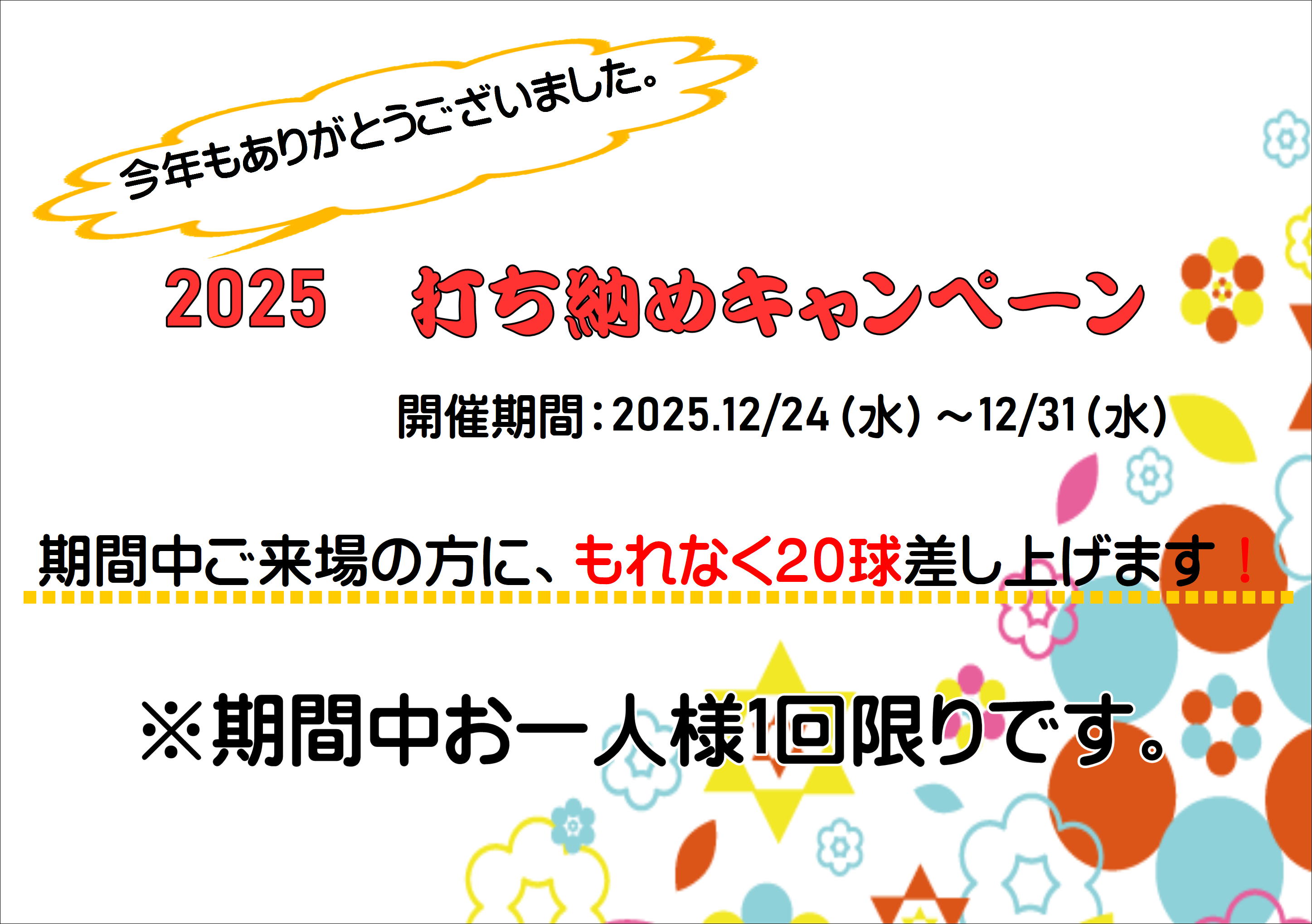 2025年の打ち納めとして期間中にご来場の方へ、もれなく20球無料プレゼント!