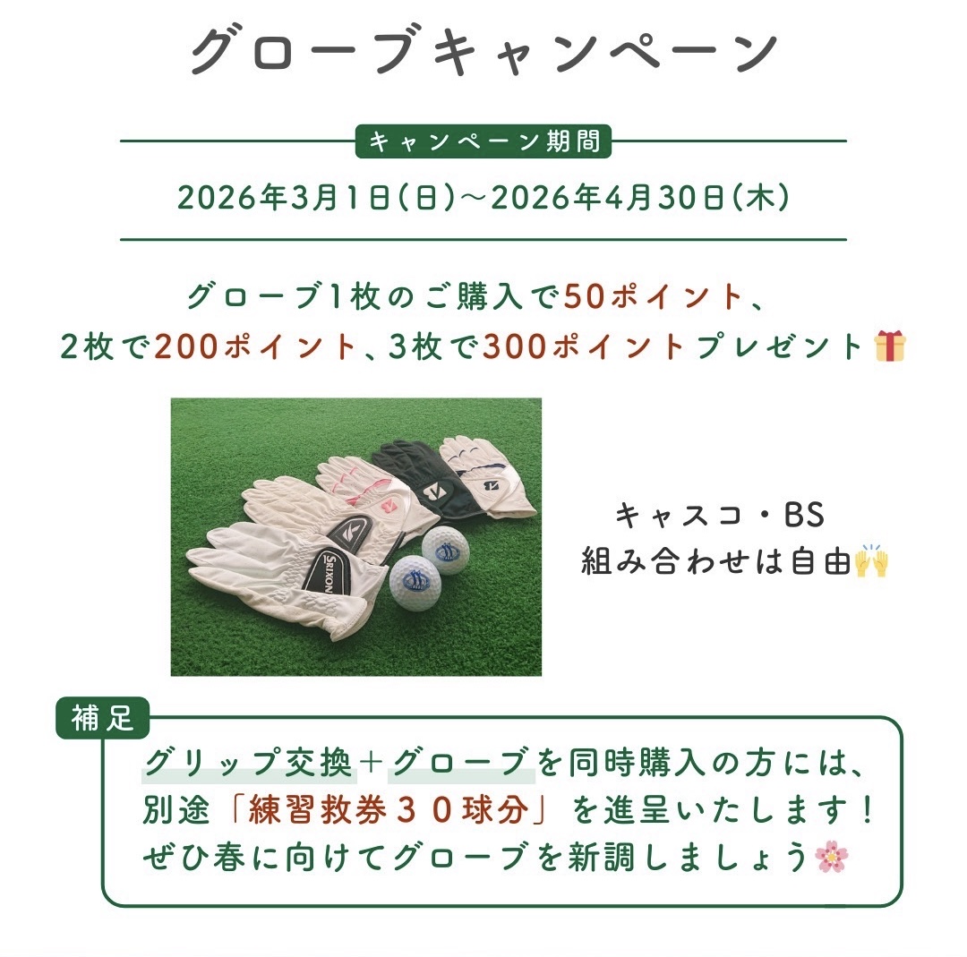期間中グローブをご購入いただくと、ご購入枚数に応じてポイントをプレゼント🎁